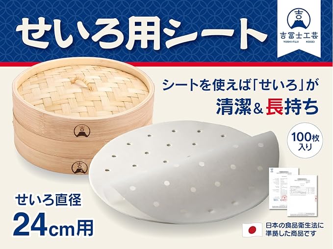 【吉冨士工芸】 竹せいろ 24cm用シート 蒸し器 中華 せいろ セイロ専用 (24cm用シート100枚)