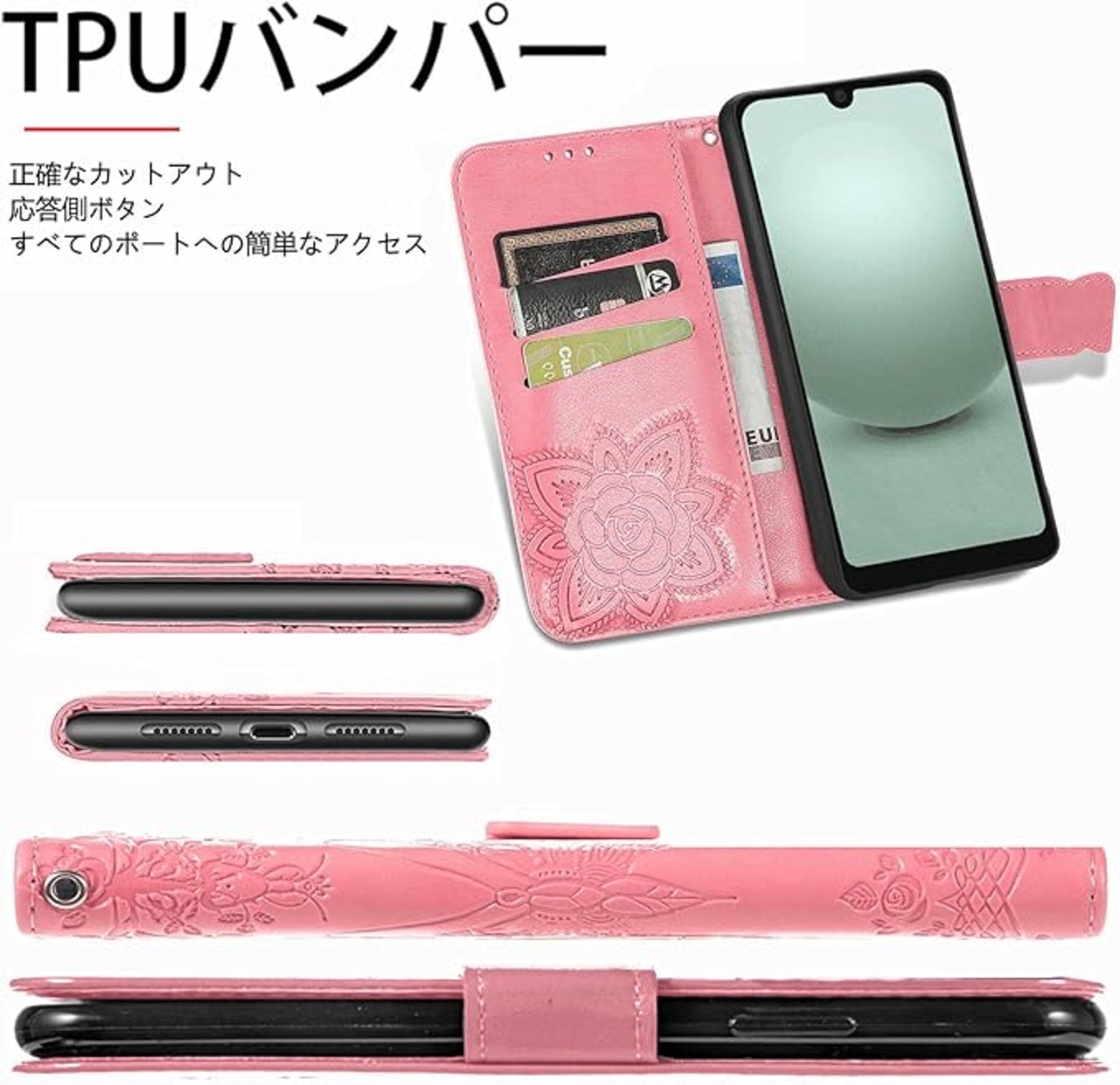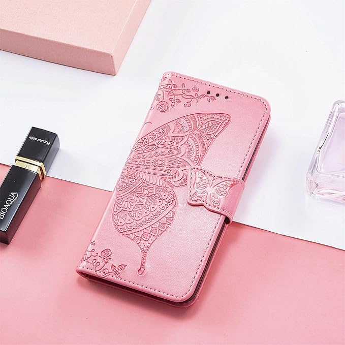 に適用するAquos wish 3 SH-53D A302SH ケース 手帳型 Aquos wish3 ケース 手帳型 ノートブック型携帯電話保護カバー多機能携帯電話ホルスター財布携帯電話ホルダーバンプパターンテクスチャ耐久性摩擦耐性携帯電話ケース男性と女性に適した多色オプション (バタフライピンク) | etshop