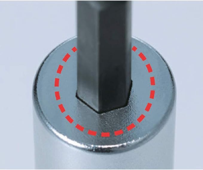 ●業界トップクラスの軸強度を実現しました。●基本的な形状の電ドルソケットです。●長軸のトーション効果により、長寿命です。●ソケット部の六角穴に六角軸を圧入することで、ねじれ・折れに強く、トルク伝達効率が高いです。●深穴式になっており、雄ネジの飛び出しが長い場合でも使用可能です。●ボルト・ナットを確実にとらえ、面接触で角を傷めません。