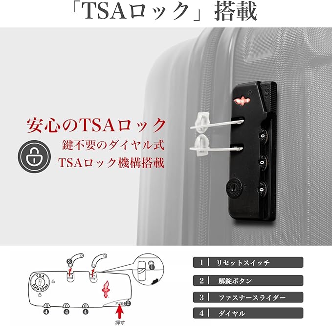 【TSAロック&操作簡単】キャリーバッグの鍵には世界基準のTSAロックを使用しています。外出がより安全です。隠しフックとサイドフック付き、モノ掛けで旅行が楽々、とっても便利で手荷物が増えたに対応します。