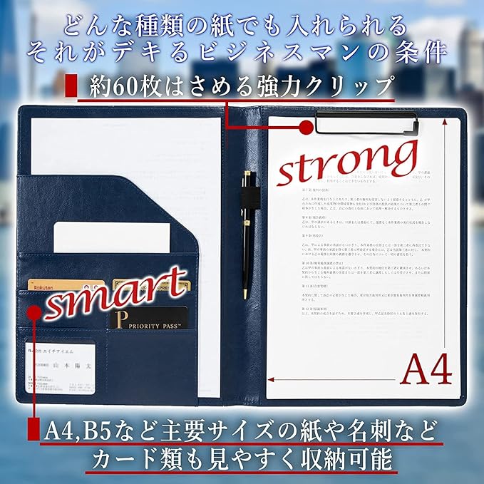 ✅【多サイズポケットで機能的】A4,B5,名刺,カードなど、様々な種類の大きさに対応できるポケットをご用意しました。透明なポケット付きのため、つい忘れがちな大事な取引先の方の名刺などを常に見えるようにできる仕組みとなっております。しっかり入れることで、A4の書類もはみ出ることなくご使用いただけます。