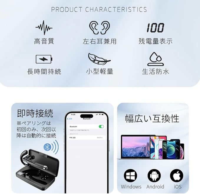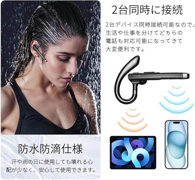 明誠 ワイヤレスイヤホン ヘッドセット Bluetooth 5.3 ワイヤレス 耳掛け型 ビジネスヘッドセット 自動ペアリング 左右分離型 バッテリー残電量表示 LED付き 軽量 iPhone&Android対応 | etshop