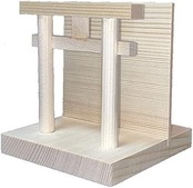 シンプルな簡易的な神棚のお札立てです。鳥居も付いていてモダンで場所を選ばずに置けるコンパクト な設計になっています。組立は3枚の板をはめこむだけで簡単・便利。組立て説明書付。木製。日本製