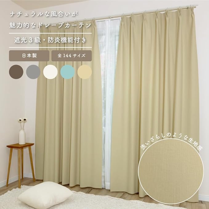 【機能】3級遮光、防炎、遮熱、断熱、ウォッシャブル