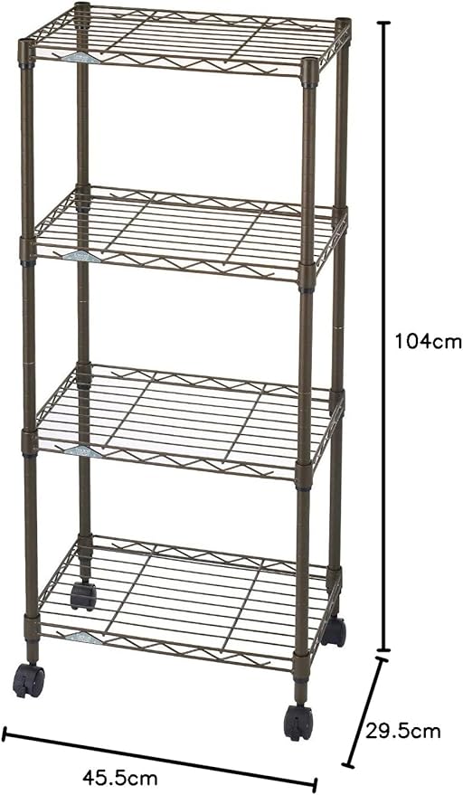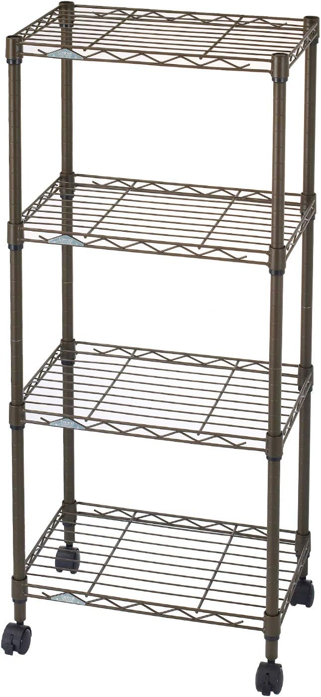 ドウシシャ ルミナス カラーラック ブラウン 4段 幅45 スリム オシャレでかわいい スチールラック 棚 収納 全体耐荷重120kg キャスター付き ポール径19mm 幅45.5 奥行29.5 高さ104 キッチン ランドリー 押し入れ LCR45-4BR | etshop