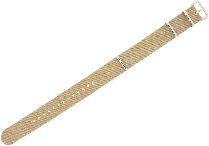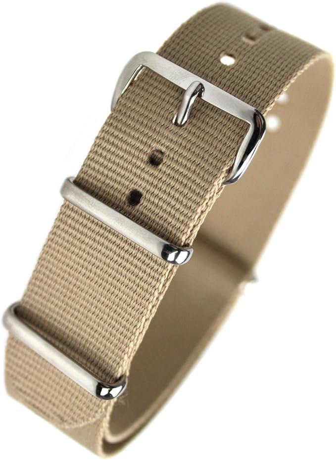 腕時計用ナイロンベルト NATOタイプ - NATO type - ・豊富なカラーバリエーションとサイズ展開 ・柔らかく付け心地の良い素材感 ・汗や水に強い素材 ・錆びにくいステンレス仕様バックル ・リーズナブル ※汚れや汗のにおいには、水もしくは水で薄めた中性洗剤で洗い、陰干しがおすすめです。 ベルト材質 ナイロン、尾錠 ステンレス、長さ 約28.8cm、厚さ 約1.2mm、止め穴 13個、 【装着サイズ】 最小で手首周り約14.5cm方から最大で約22.0cmの方まで装着可能です