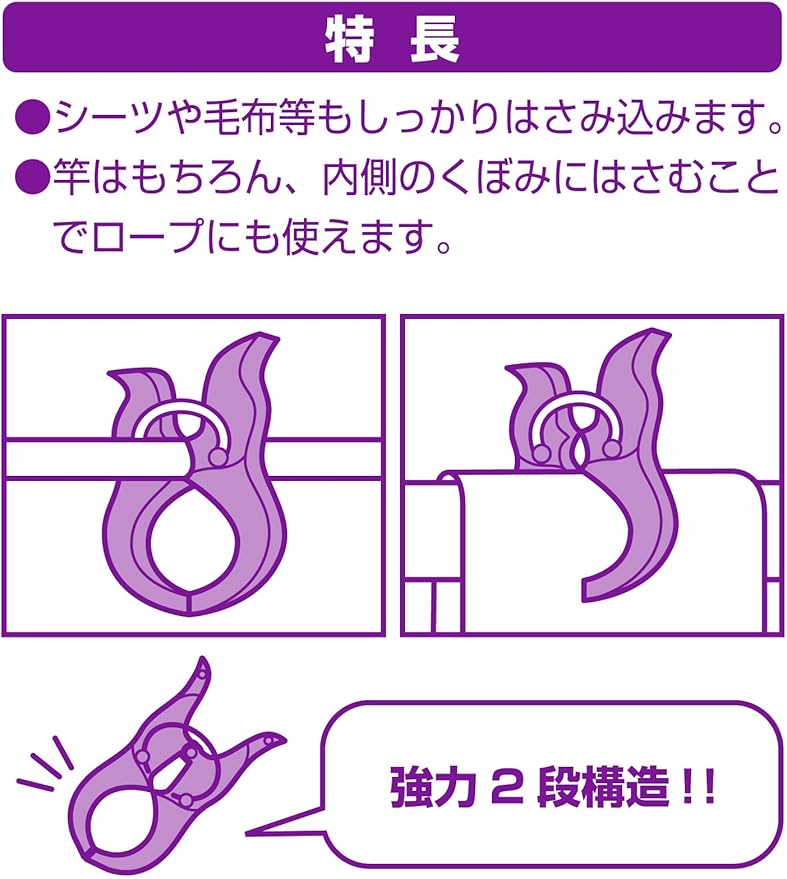 バスタオルや毛布等をしっかり固定します。内側のくぼみで洗濯ロープを挟んで洗濯物を干すこともできます。