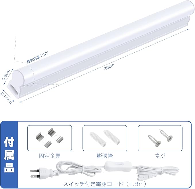 Haian Support LED蛍光灯 10W形 器具一体型 T5 直管型 5W 30cm高輝度 6500K昼光色 ledバーライト ベースライト キッチン用 棚下 壁掛け 軽量 省エネ コンセント 電源コード付き 取付簡単 多目的 台所/洗面所/クローゼット/壁面 | etshop