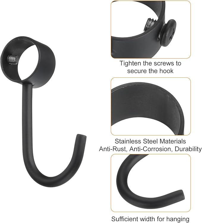 素材 - ステンレス製のパイプロッドフックは錆びにくく、腐食に強く、簡単にクリーニングでき、変形しにくく、長持ちします。重いアイテムを安心して掛けることができます。