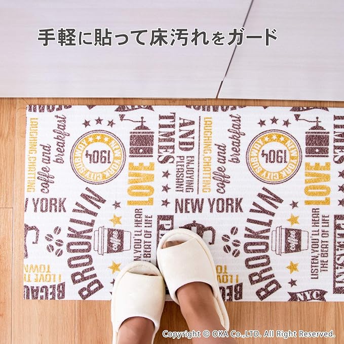 ●本製品をはがした後、床面が滑りやすくなる場合がありますのでご注意ください。その際は床面を濡れ雑巾で拭いていただくとすべりにくくなります。