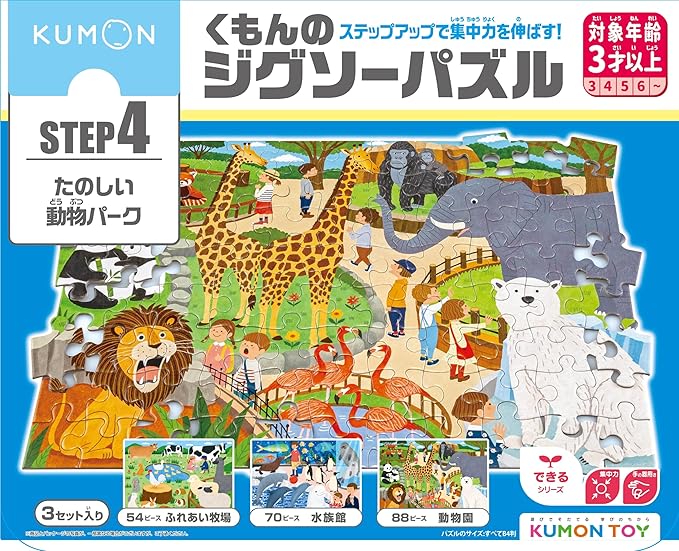 くもん出版(KUMON PUBLISHING) くもんのジグソーパズル STEP4 たのしい動物パーク 知育玩具 子供ジグソー 54ピース・70ピース・88ピース 3歳以上 JP-46 KUMON | etshop