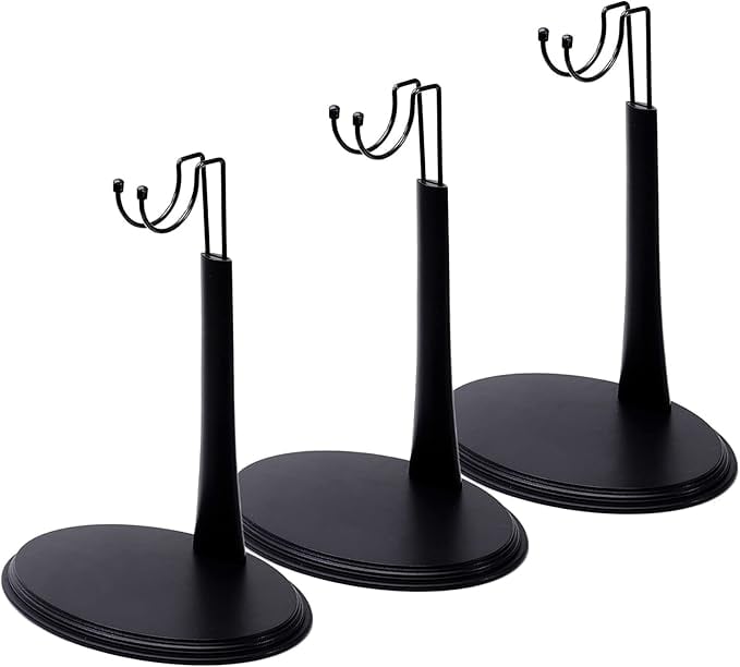 【ネームプレート無し仕様】軽量で丈夫な1/6スケール用ディスプレイスタンドです。 簡単組立でしっかり固定!大切なフィギュアの転倒防止、ディスプレイにGood! 【サイズ】高さ:12〜20cmで調節可能 台座幅:13.8cm 奥行き9.8cm 台座の高さ:0.8cm 【商品内容】3個セット 【カラー】ブラック 【重量】1個あたり約60グラム