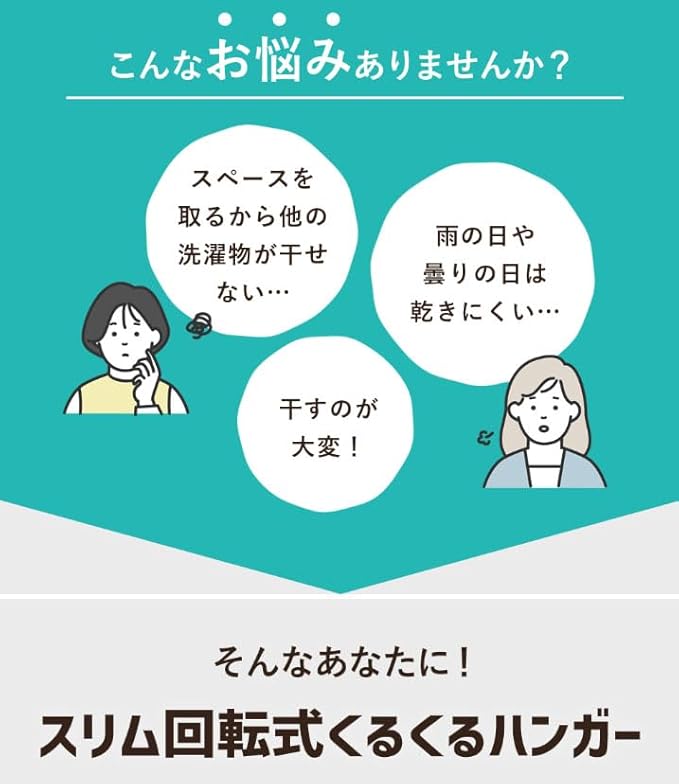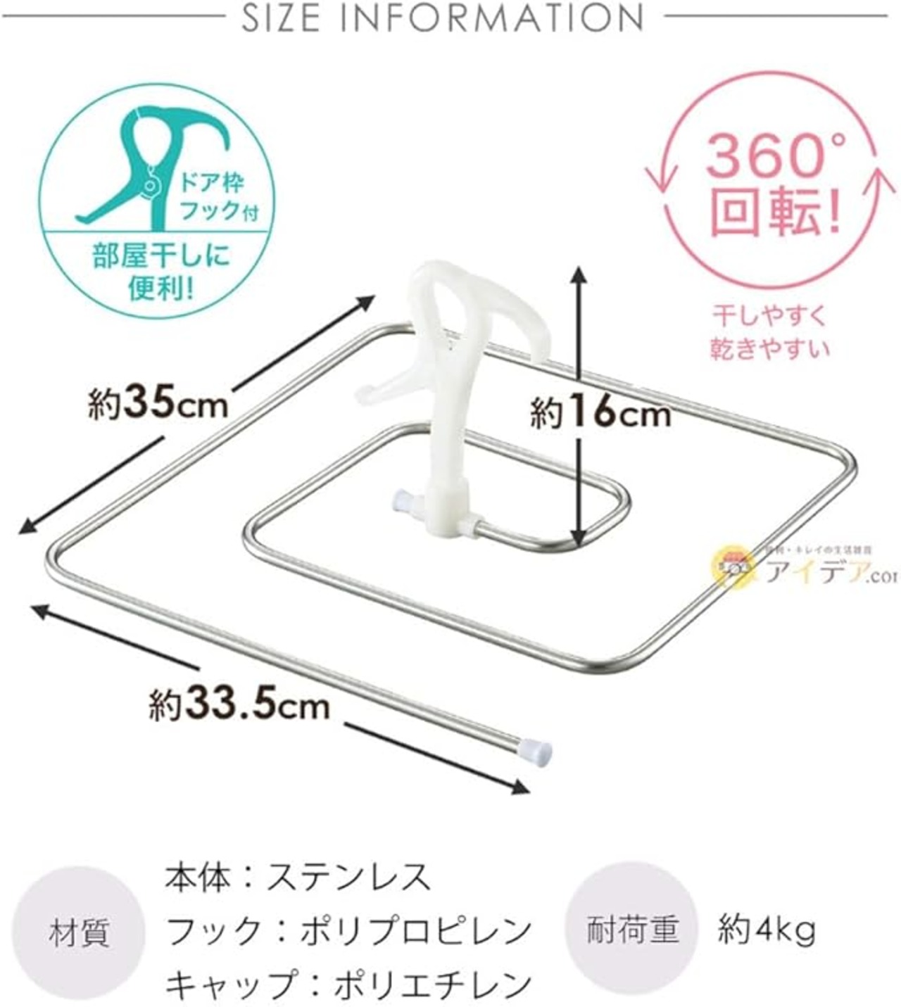 くるくる通すだけでシーツやバスタオルが省スペースで干せる。四角タイプで風が吹いても飛びにくい。カーテン・ベッドカバーにも