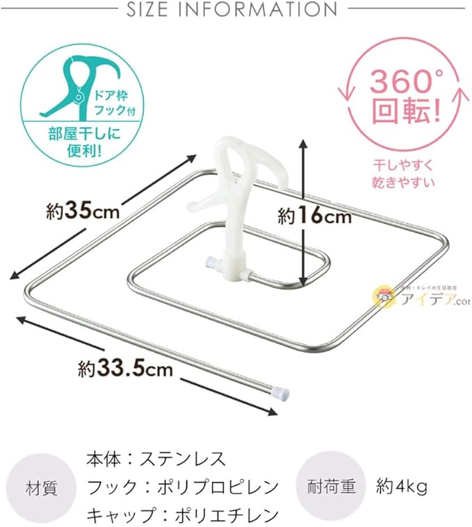花粉時や雨天時になど、お風呂干しや室内干しにも便利!部屋干しに便利なドア枠フック付!空気の通りがいい設計だから乾きやすい!