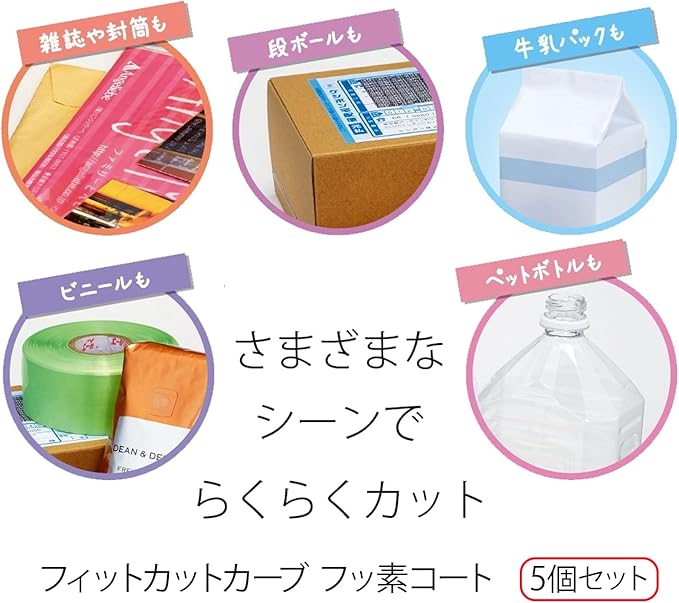 テープ等の粘着物がベタつかず、汚れやサビに非常に強い高性能コーティングのフィットカットカーブ5本セット
