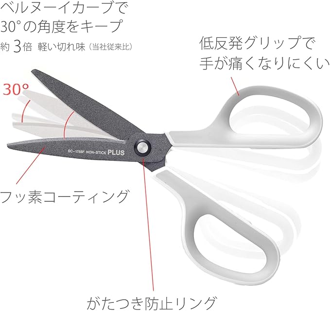 根元から刃先まで切断に最適な刃の開き角度(約30 )を常に保つゆるやかなカーブを持った