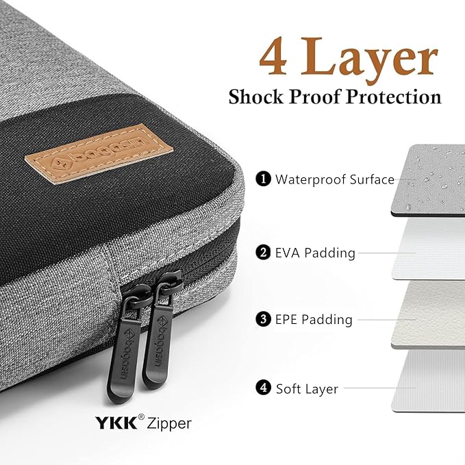 【4層保護】: Bagasinラップトップスリーブケースは、あなたのラップトップを4層で保護することを特徴としています:1. 最も外側の防水性と傷に強い生地; 2.スリムで滑らかな形状のための弾性EVAパディング;3.EPEフォームで衝撃吸収を実現します; 4.余分なソフト層