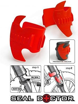 オイル漏れ対策のメンテナンスツール砂や泥が入ってしまったフロントフォークのシールをクリーニングするためのツールです。ダストシールを下へ下げ、シールドクターをはめます。エッジを差し込み回転させて、砂や泥を書き出します。上下にエッジがありますので、オイルシールとダストシールのクリーニングが可能です。