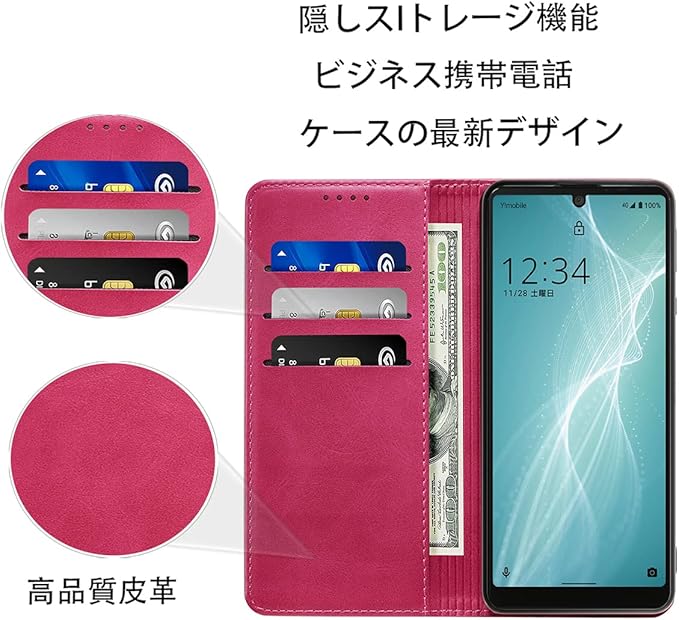 Sense4 ケース 手帳型 高質PUレザー Sense4 Lite カバー Sense 5G ケース Sense4 basic SH-41A SH-M15 通用ケース 耐衝撃 内蔵マグネット開閉式 ベルトなし スマホケース おしゃれ カードポケット スタンド機能 便利 スプラット同梱 携帯ケース(ローズレッド) | etshop