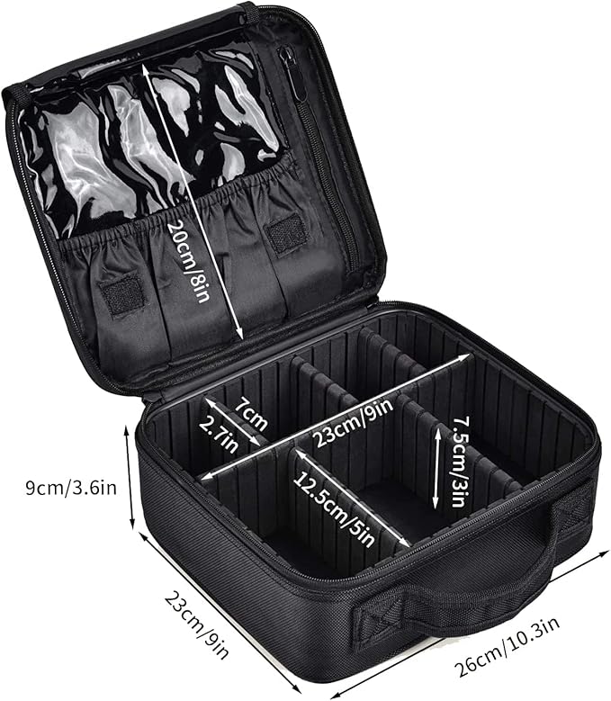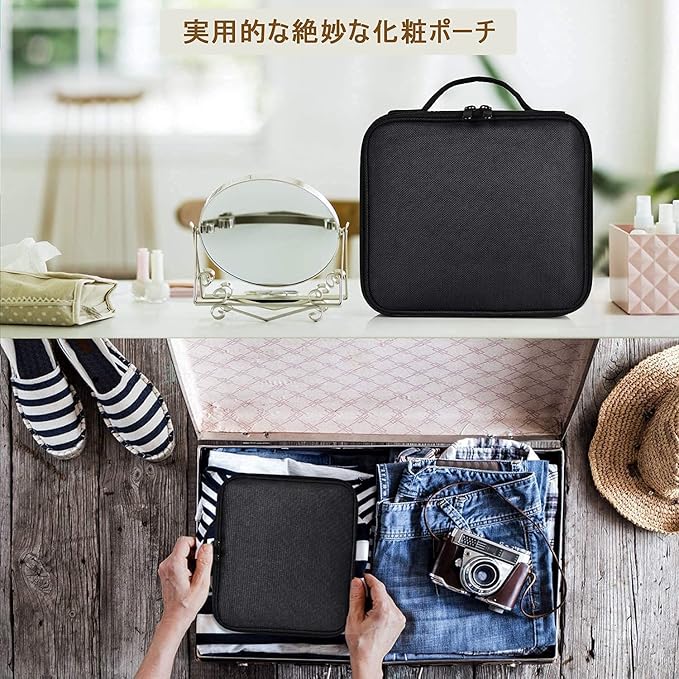 Viemior メイクボックス プロ用 コスメボックス メイクポーチ 機能的 大容量 化粧ポーチ コスメポーチ 持ち運び メイクぼっくす 化粧品 メイク 道具 収納ボックス メイクブラシバッグ 旅行 出張用 (黒)