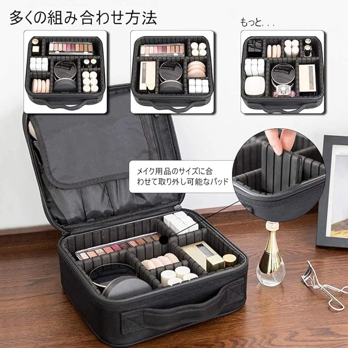 【3】[化粧品 収納]: 取り外し可能なEVAスポンジの中仕切りが対象品によって好きに並べます、化粧品の保管が簡単。
