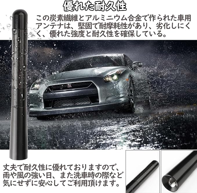 【優れた耐久性】この炭素繊維とアルミニウム合金で作られた車用アンテナは、堅固で耐摩耗性があり、劣化しにくく、優れた強度と耐久性を確保している。長期的な紫外線暴露に耐え、悪天候でも信号を受信できる良好な状態を提供します。