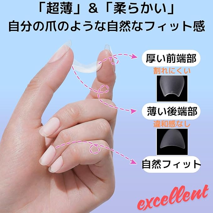 【 安心の長時間耐久性&安全設計 】 高強度かつ強靭性のあるソフトアクリル素材を使用し、長時間剥がれにくい耐久性を実現。どんなにアクティブなライフスタイルでも安心して使用可能です。さらに、日常生活での摩耗にも強く、美しい仕上がりを長くキープできます。使用素材の安全性にも徹底的に配慮。肌に優しい素材を採用し、アレルギーのリスクを最小限に抑えています。耐久性と美しさ、安全性を兼ね備えた、信頼できるアイテムです!