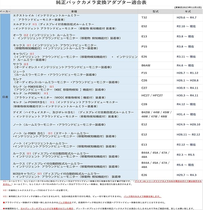[Rn1324] バックカメラ変換 日産 三菱 スズキ アラウンドビューモニター付車 ルームミラー内に映るバックカメラ映像を市販カーナビに映せる変換ハーネス(RCA023N 同適合) | etshop