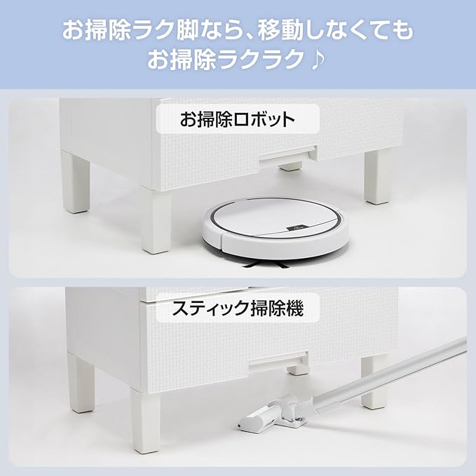 大人気フィッツプラスシリーズを差し込むだけで簡単に高脚にできる専用脚。高さが14cmアップするのでお掃除ロボットやスティック掃除機もスイスイ入るのでお掃除もラクラク。
