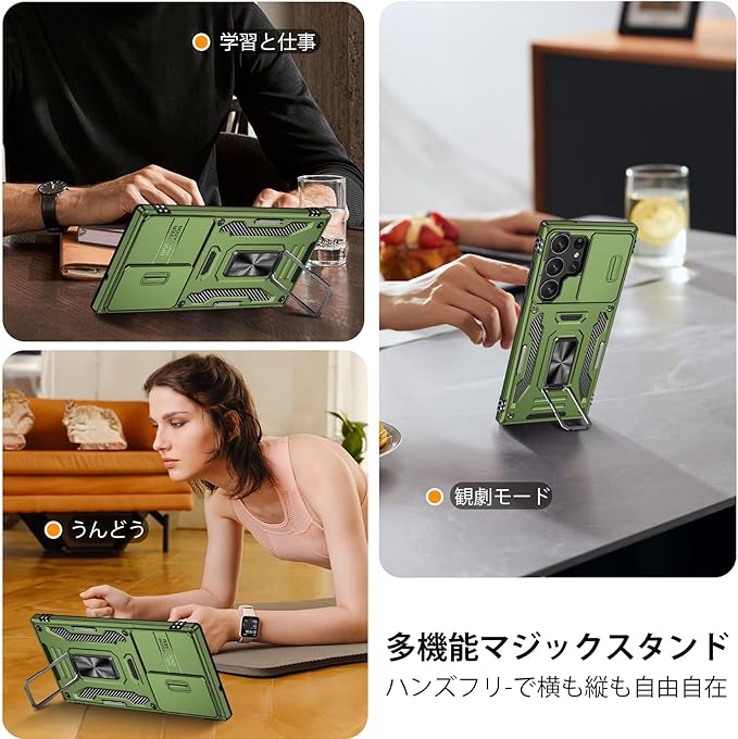 JSTNMEBO Galaxy S25 Ultra 用ケース リング付き 耐衝撃 レンズ保護 TPU+PC 二重構造 バンパー 車載ホルダー対応 360 回転 スタンド機能 スマホケース サムスン ギャラクシー s25 ウルトラ用ケース 一体型 携帯カバー 緑 J12-40 | etshop
