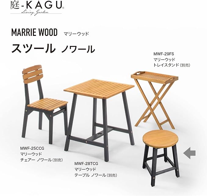タカショー マリーウッド スツール ノワール MWF-26CCG は、天然木ユーカリ材を使用した屋外用のガーデンファニチャーです。