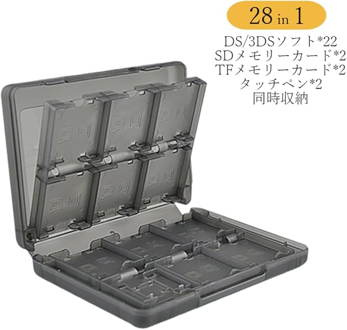 容量:同時に22枚DS/3DSソフトカード+2枚SDメモリカード+2枚TFメモリカード+2本タッチペンを収納可能。