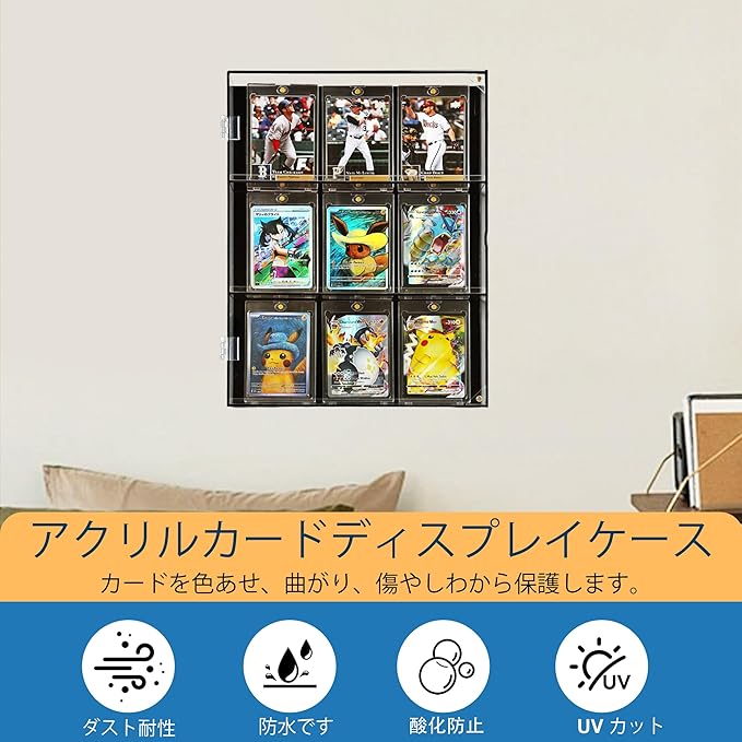 【マグネット扉&UVカット機能】強力マグネット扉でしっかり固定し、ワンタッチで簡単に開閉可能。UVカット機能付きで、紫外線による色褪せ・劣化を防ぎ、カードを美しい状態で長期保存できます。