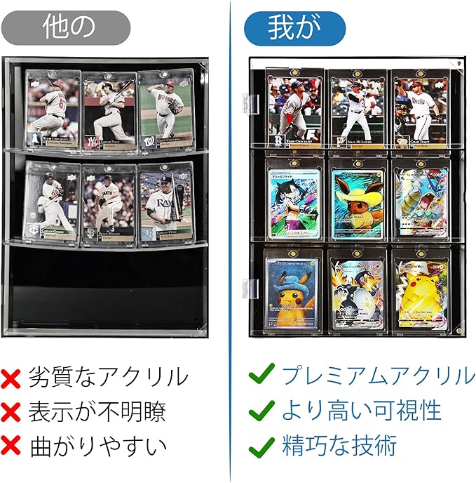 【サイズ&高透明アクリル】本体サイズ:長26 幅5 高34.5㎝。高品質アクリル製カードケースで、**透明度99%**のクリアな視認性を実現!大切なコレクションをしっかり守りながら、おしゃれに展示できます。