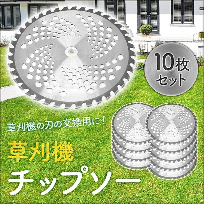 一般的な外径255m、刃数40Pの草刈機用替え刃をお得な10枚セットにしました!いつでも綺麗な刃で草刈りをすることができます。