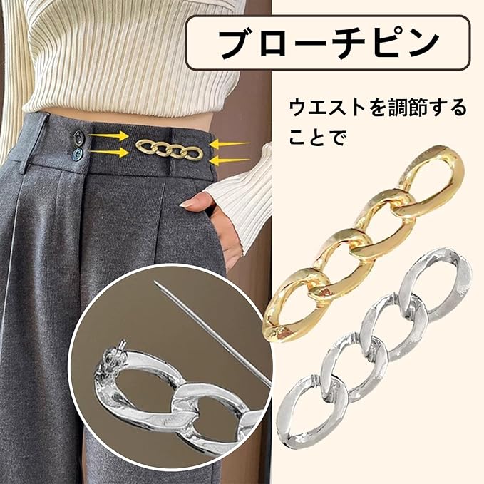 【ブローチピン】ブローチピンはスタイリッシュなデザインを採用、ゴールドとシルバー、日光の下できれいに見え、服装にシックで魅力的な感じを与えます。ウエストサイズを調整するだけでなく、スカーフ、ショール、バッグ、帽子、アクセサリーとして衣服に使用されるブローチ。