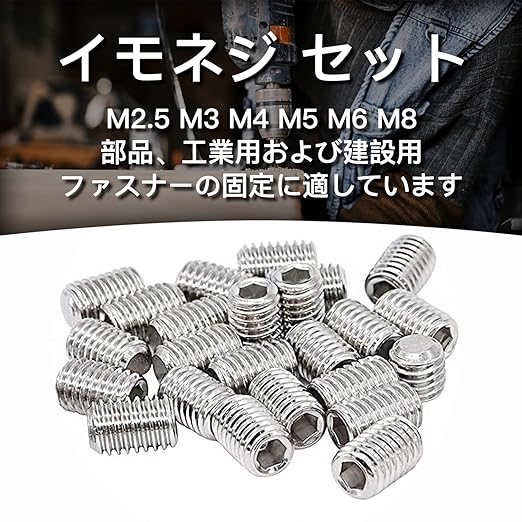 【イモネジ 材質】六角穴付止めネジは304ステンレス鋼を採用して、硬度が高く、耐食性と防錆性に優れ、使用期間が長くなっています。その上、ステンレス鋼は無毒で無公害です!高温、寒冷、多湿などの過酷な環境でも長期間使用できます、屋内外のさまざまなプロジェクトで心配なく使用できます。