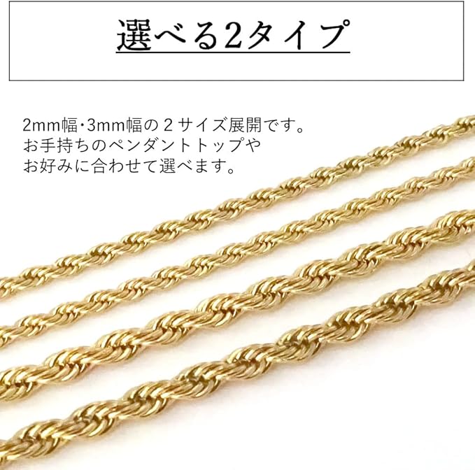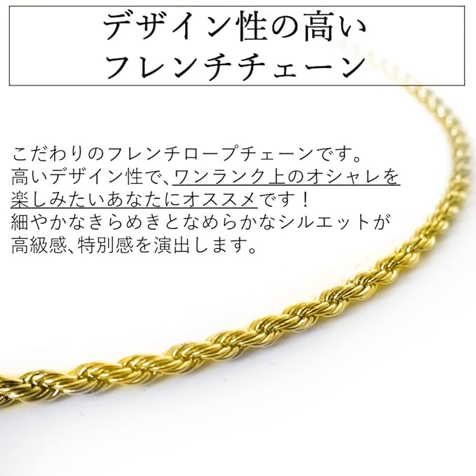 [京都おかげさまで] アレルギー対応 ステンレス フレンチロープチェーン ネックレス ゴールド 幅 2mm 3mm