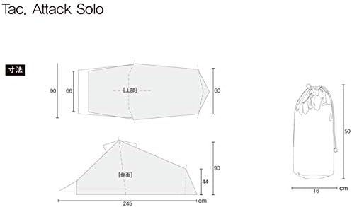 ■底面サイズ:90cm 245cm■高さ:90cm■収納サイズ:50cm 16cm■総重量:1490g■ポール:DAC Featherlite NSL 8.5mmポール■材質:フライ/20Dリップストップナイロン3レイヤー耐水圧/5000mmフロア/40Dリップストップナイロンフィルム加工耐水圧/10000mm■付属品:ポール 2本、ペグ(J-StakeS 8本)、自在付きガイライン(1.5m 1本)、スタッフバッグ、ポールバッグ、ペグバッグ