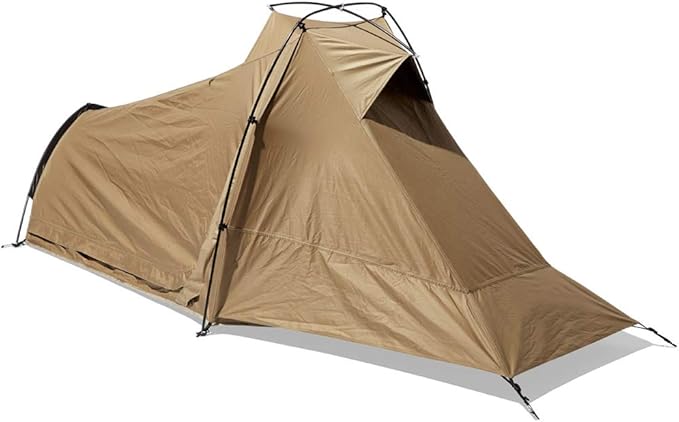 Helinox ヘリノックス タクティカル Tac.アタックソロは設置、移動、保管が簡単にできるデザインのソロ用シングルウォールテントです。通気性を向上させるために後ろの上部に通気口が設けられています。サイドに位置するドアは2枚のパネルになっており、1枚を開けたままでももう一枚のパネルで開閉が可能です。非常に耐風性の高いデザインです。