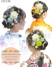 「多様性」:様々な組合せを変化でき、着物と髪型によって、お好きな位置に動かせます!クチナシとピンポンマムが優雅な雰囲気です。結婚式、披露宴はもちろん、花火大会、夏祭り、卒業式、成人式、卒園式、結婚式、お正月、七五三など様々なイベントにもピッタリです。