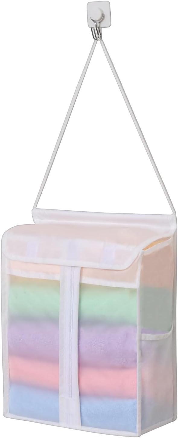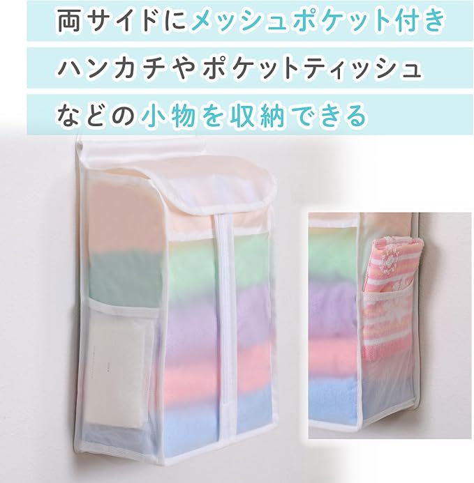 アストロ タオル収納ケース ホワイト 半透明 タオルストッカー 壁掛け 吊り下げ フェイスタオル入れ 保管ケース タオルホルダー 水に強い お手入れしやすい ポケット付き 110-03 | etshop