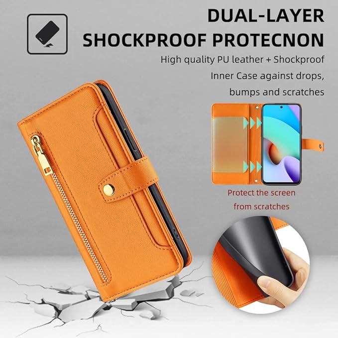 BASIO active SHG09 / BASIO Active2 SHG12 ケース 手帳型 ショルダー 適用 シンプルスマホ6 A201SH ショルダーケース ストラップ 長+短 2本 ベイシオ アクティブ2 スマホケース シンプルスマホ7 A404SH 手帳 【BonwFzin】 ストラップホール付き カード収納 バッグ スナップ 肩がけ 斜め掛け ファスナー 耐衝撃 カード オレンジ | etshop