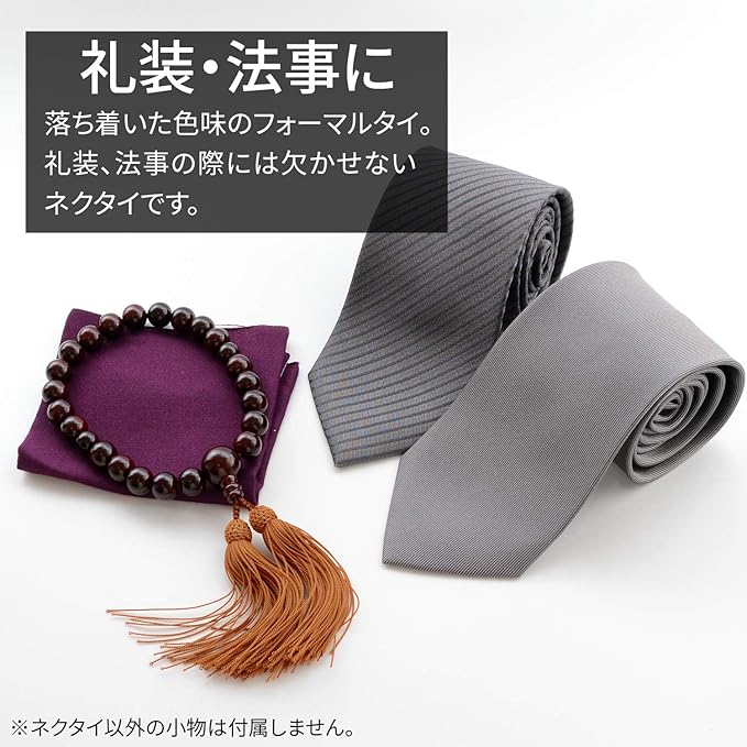 【法事、法要に】結婚式のホワイトタイ、お葬式のブラックタイは持っていても法事用のグレーネクタイは持っていない方が多いのではないでしょうか。落ち着いた色、柄のジャガード織グレーネクタイは1本は持っていたい必須アイテムです。
