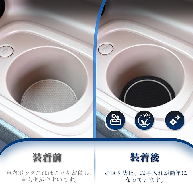 安全設計:「夏の車内でプラスチック臭が気になる」「小さな子供が触れても大丈夫?」そんな不安を解消する無毒PVC素材。高温下でも有害物質を放出せない安全性を実現。育児も安心して使える環境配慮型設計です。
