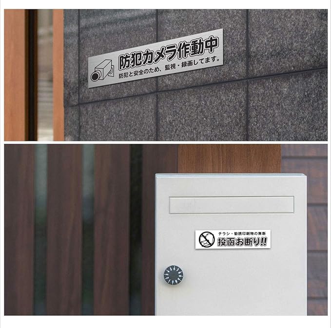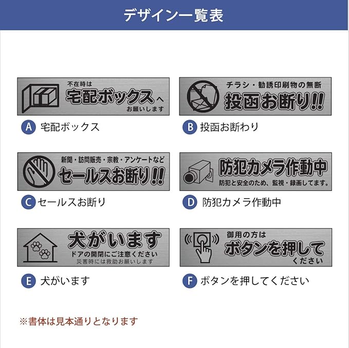 アルテスタ 表札 アクリル サインプレート 両面テープつき 宅配ボックス セールスお断り ステンレス調 シール ゆうパ (ステンレス調 黒文字 デザインE)
