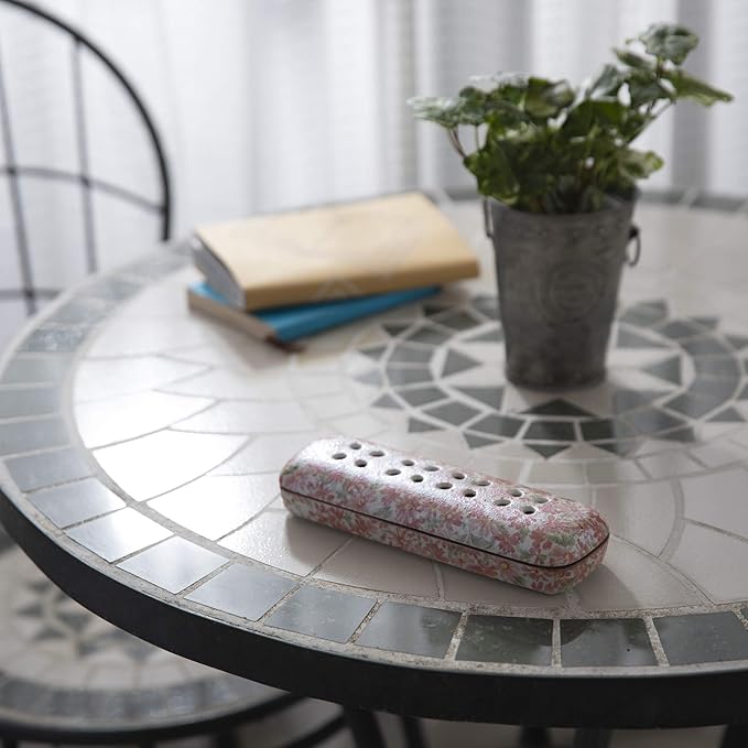 線香を寝かせて使用するため、最後まで線香を使いきれます。また、お線香が倒れたり、燃えた灰が飛び散る心配がありません。お盆の暑い時期にも、エアコンの風を気にせずご使用いただけます。スティックタイプの蚊取り線香などにもご使用いただけます。