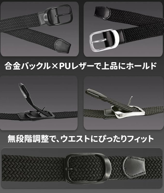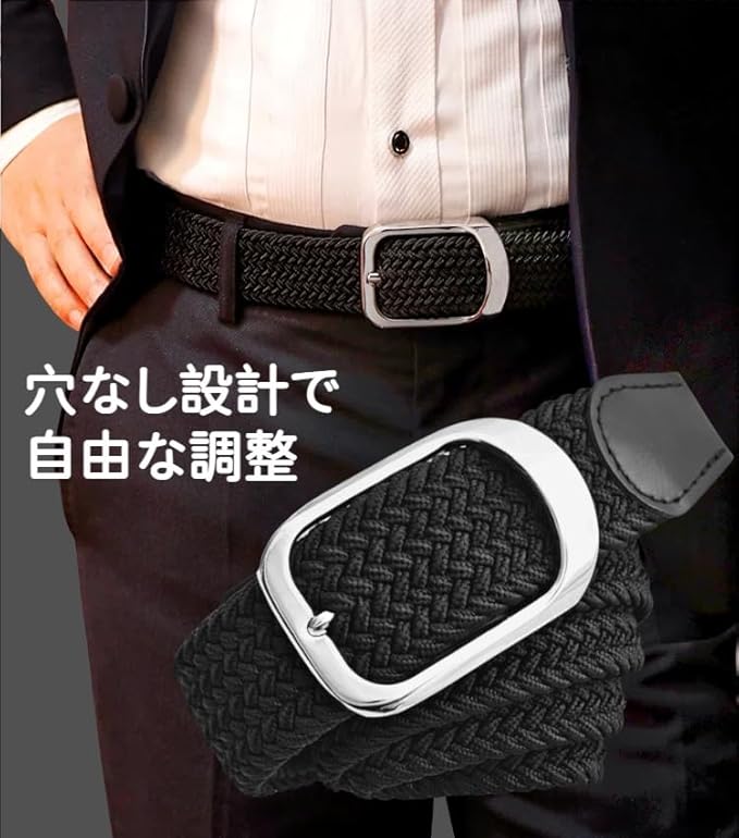 【体型を問わず快適に使えるメンズベルト】 このメンズベルトは、伸縮性のあるメッシュ素材を使用し、編み込みタイプの「穴なし設計」でサイズ調整が自由自在。ウエストにぴったりフィットし、ビジネスでもカジュアルでも活躍する万能アイテムです