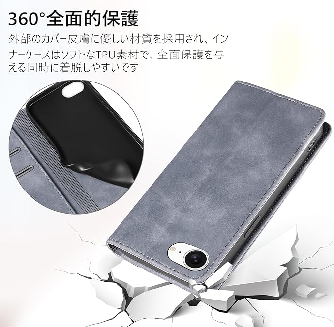 【衝撃吸収・360 保護】外部のカバーはiphone16eよりも1mm以上広めに設計されており、落下時の衝撃を効果的に吸収してスマホへの直接的な外力を防ぐようになっています。iPhone16eインナーケースはソフトなTPU素材で、二重の保護として機能します。また、マグネットフラップを採用、アイフォン16e手帳型 ケースに搭載されているマグネット式のフリップにより、カバーをしっかり固定することができます