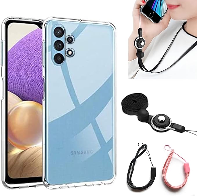 GOKIGIOD 適用 Galaxy A32 5g ケース クリア 【 ストラップ 三本付き】 薄型 ぎゃらくしーA32 SCG08 カバー 透明 軽量 GalaxyA325g スマホケース 首掛け ソフト TPU バンパー 耐衝撃 指掛け ハンドストラップ 携帯カバー